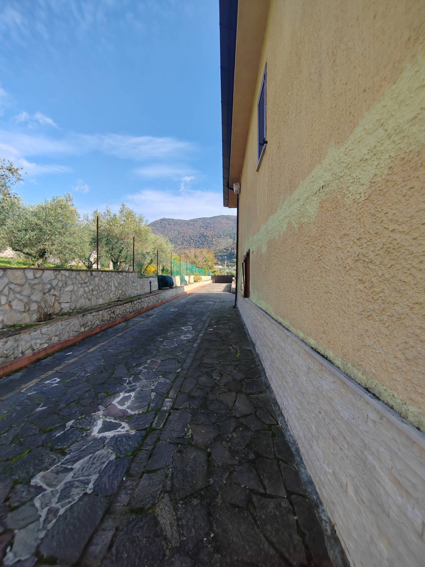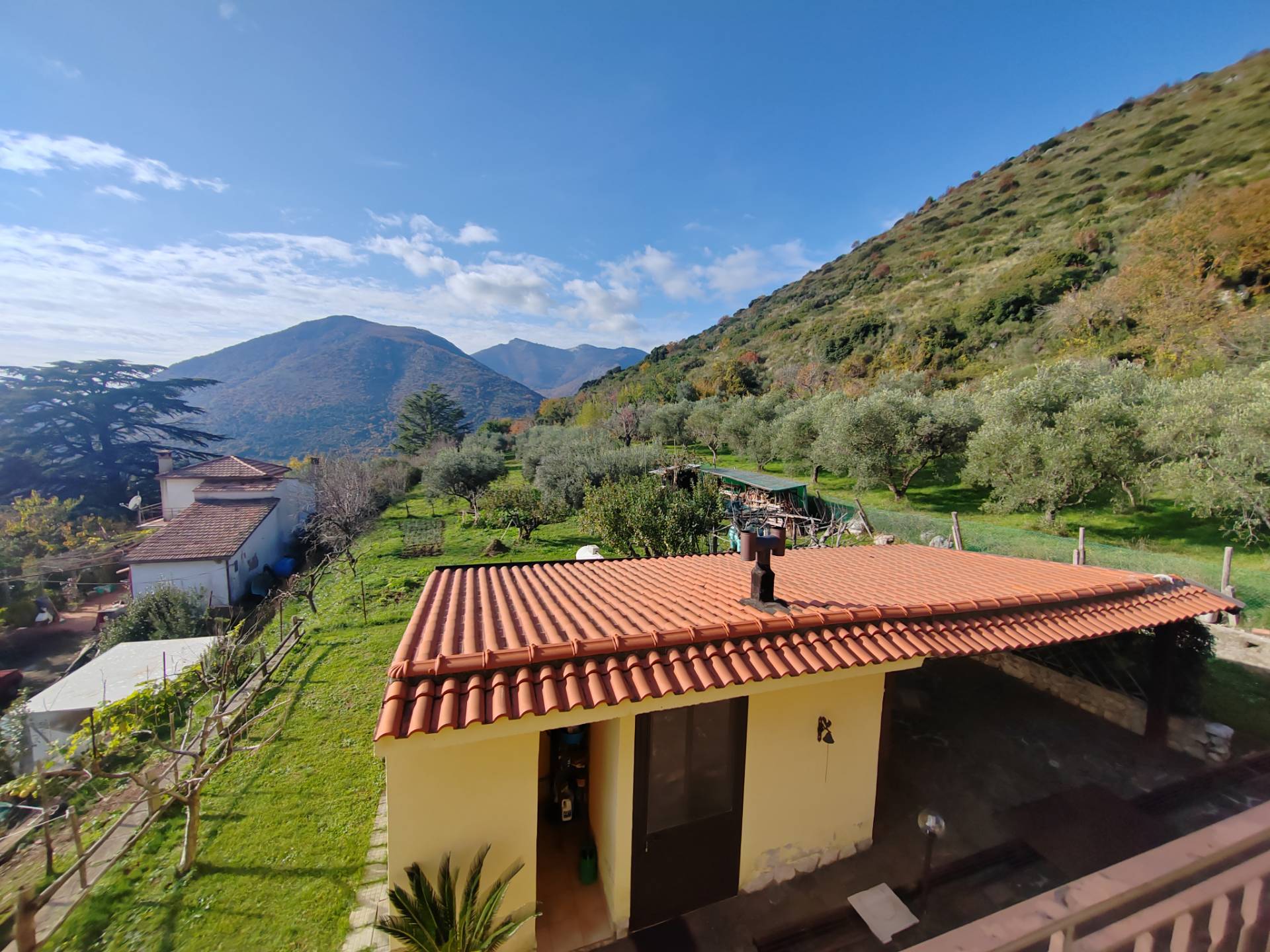 Maenza, via Monte Acuto, zona tranquillissima e ben servita, vendesi soluzione indipendente disposta su due livelli di circa 280 mq complessivi, più terreno di circa 5500 mq coltivato ad uliveto. Piano terra di circa 140 mq suddiviso tra 70 mq di zona residenziale e 70 mq di garage e cantina. Zona residenziale al piano terra composto da: ingresso direttamente in salone con angolo cottura a vista, sono presenti stufa a legna per riscaldare e cucinare, disimpegno con armadio a muro, 1 grande bagno con vasca idromassaggio, ampia camera da letto. Piano primo composto da: ingresso, soggiorno con termocamino (a pellet e legna) e terrazzino dove si può tranquillamente mangiare, cucina abitabile con balcone panoramico, 2 bagni con doccia idromassaggio di cui un bagno in camera, 3 camere con balconi; 4 tipologie di riscaldamento. Infissi in pvc con zanzariere al piano primo, antifurto, videocitofono, illuminazione esterna, cancello automatico (immobile completamente recintato). Completano la proprietà una depandance ben rifinita con bagno, tre posti auto coperti, legnaia, autoclave e 2 portici. L’ubicazione dell’immobile offre un panorama incredibile con vista sulla vallata circostante, e sul litorale del Circeo.