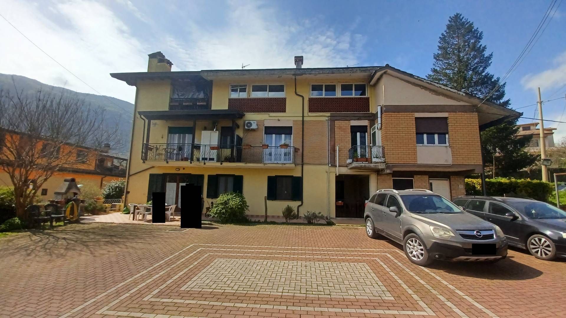 Infissi in alluminio doppio vetro, metano, barbecue, termocamino ventilato, citofono, cancello automatico.