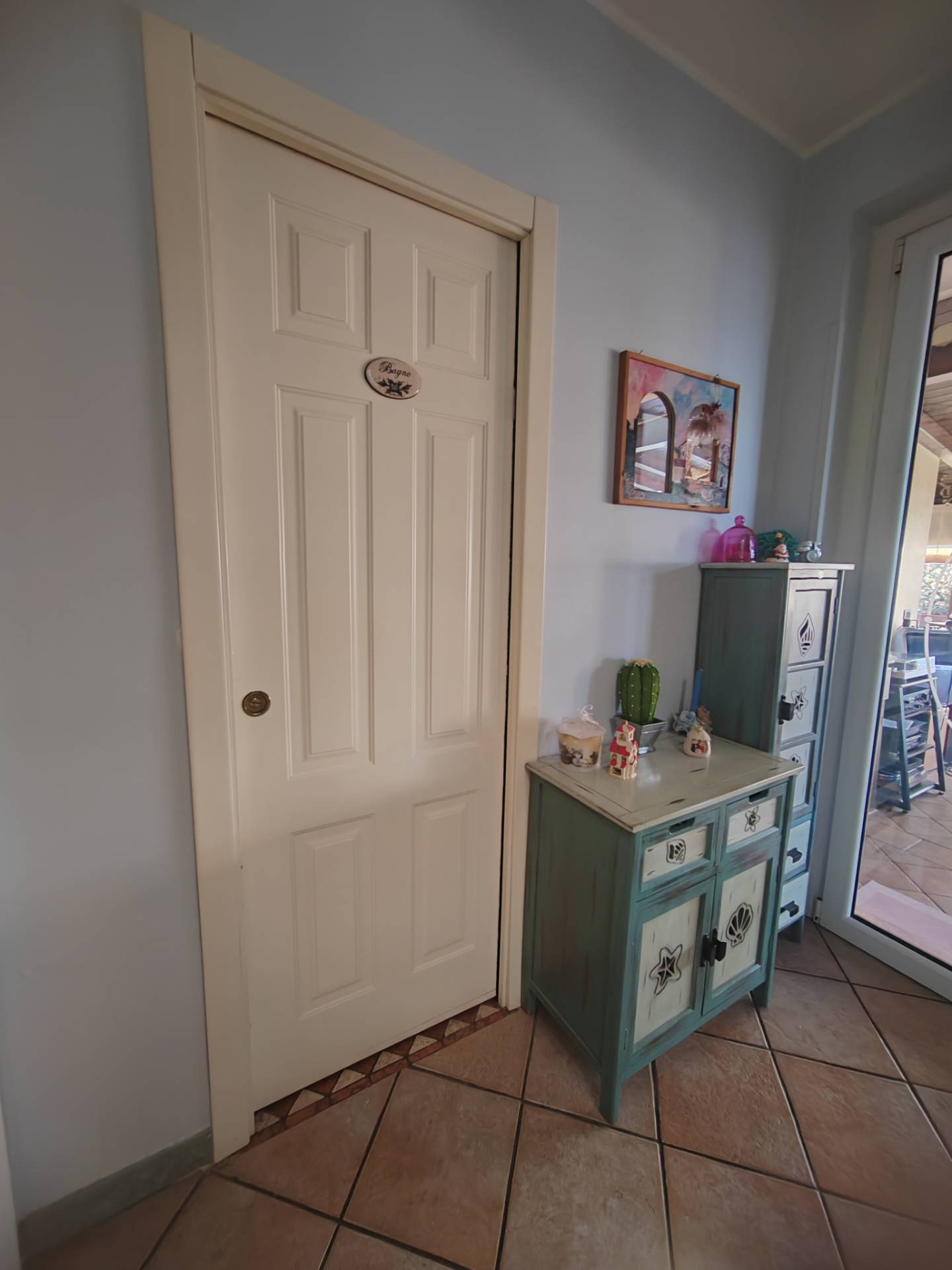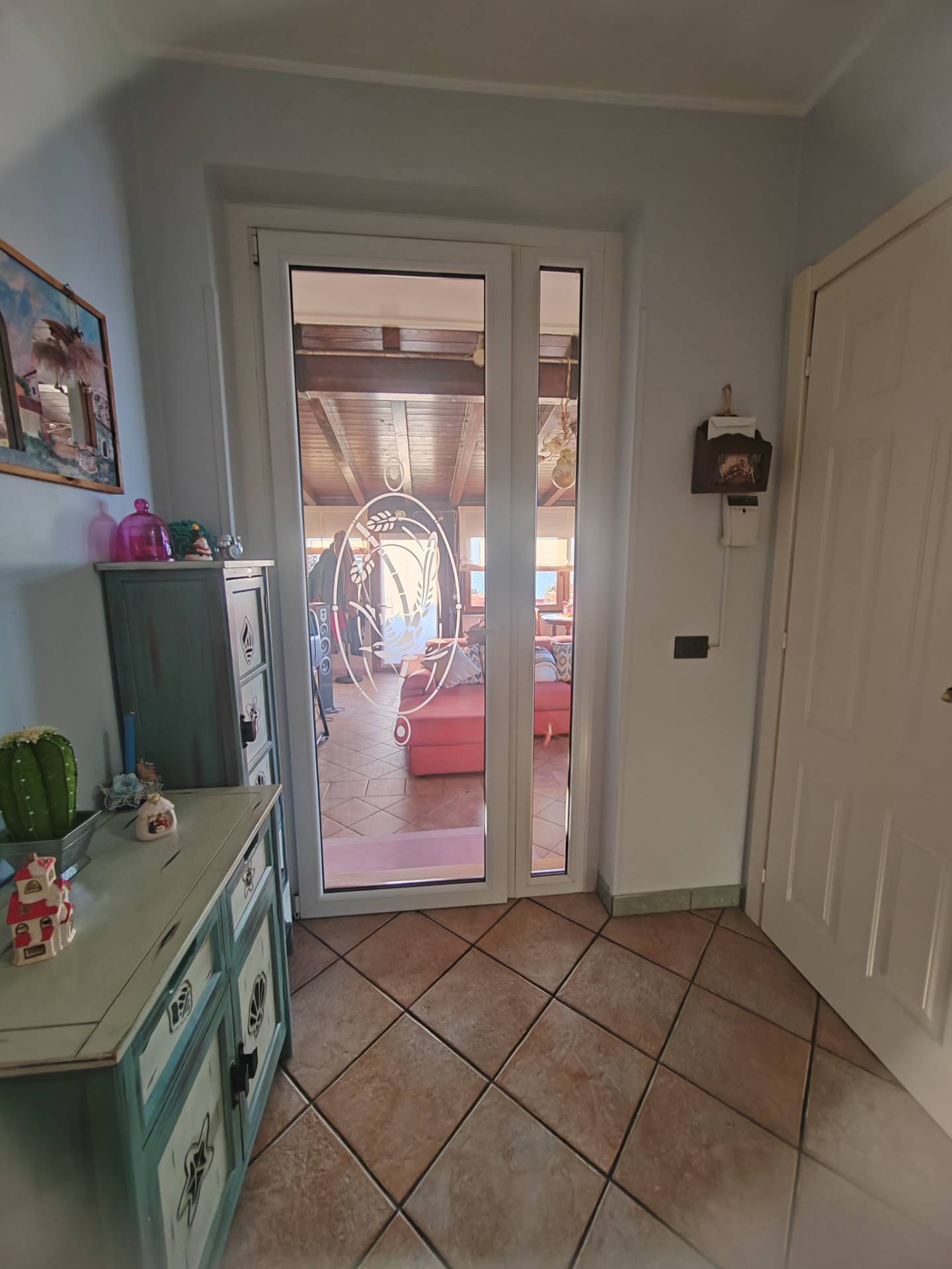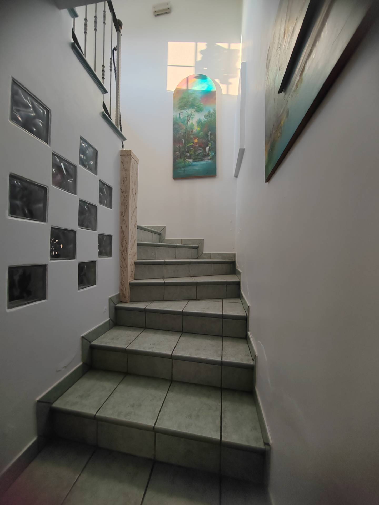 La zona giorno, situata al piano terra di circa 70 mq, si compone di un ingresso che apre su un ampio salone realizzato con grandi vetrate ed una cucina abitabile a vista e soggiorno con termocamino, lavatoio, bagno e un pratico ripostiglio nel sottoscala.